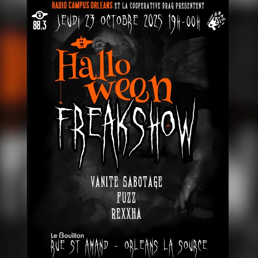 Pour marquer le mois d'octobre comme il se doit, @lafreakshoworleans s'associe avec @radiocampusorleans pour une soirée horrifique 🩸